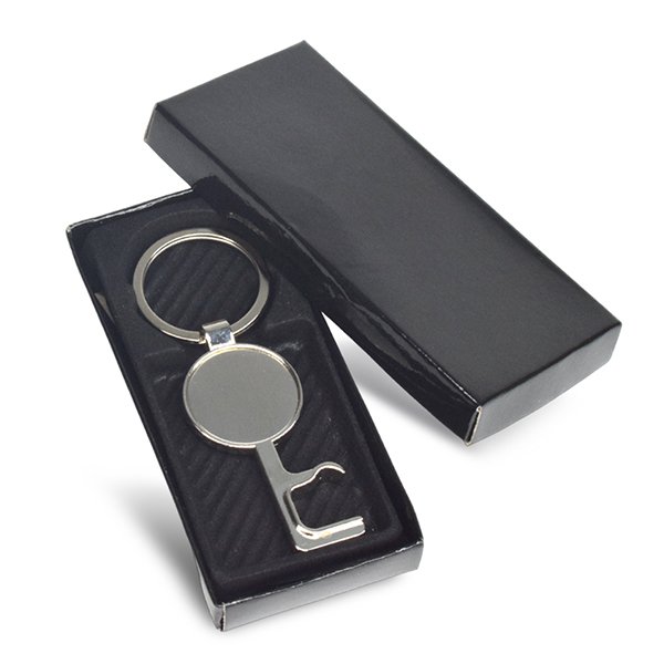 MULTI-FUNCTIONAL ROUND KEY CHAIN BOTTLE OPENER This key shaped premium metal bottle opener keychain is small and lightweight enough to fit in your hand, pocket Material: Metal | Product Size : 62 x 28 mm Printing Option: UV Printing, Screen Printing, Engraving, Epoxy