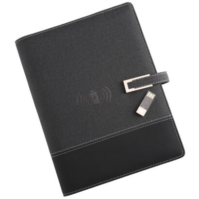 EXECUTIVE HI-TECH PORTFOLIO POWERBANK WITH WIRELESS CHARGING TECHNOLOGY Top Grade Business Portfolio with wireless charging technology Power bank and USBFlash Drive, Rechargeable build in 8000 mAh Powerbank, 8GB USB flash drive, Adjustable Organizer, Lithium Polymer Batteries, Input : 5V / 2A| Output: 5V / 2A | Product Size : 240 x 185 x 30 mm, Printing Options : Screen Print, Debossing